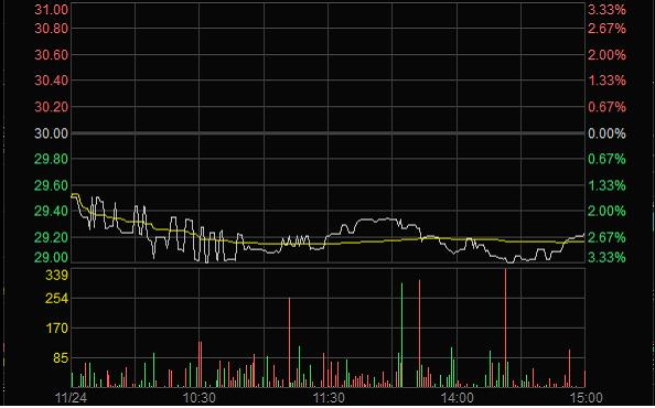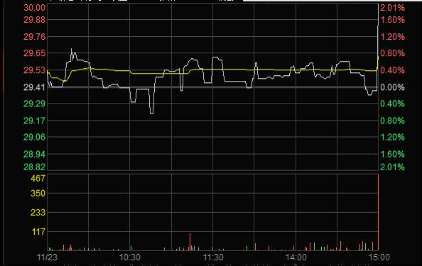 2011年11月23日临近收盘期间(14:56:24至14:59:28),任某某为了在短期内拉升股价,大量申报买入“X”4笔共计63,000股,占尾市阶段市场申买量的比例高达75.54%;委托价格由29.60元升至32.00元,每笔均高于当时市场上的买1档价格,三分钟内将股价由29.35元拉升至30元收盘,拉升幅度达2.21%。(见下图)