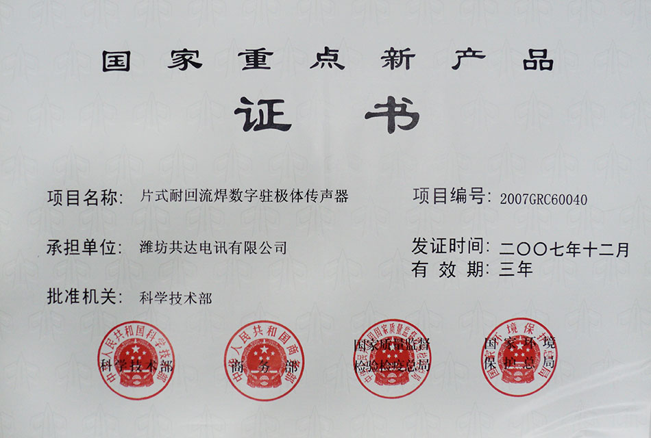 公司是专业的电声元器件及电声组件制造商和服务商、电声技术解决方案提供商。主营业务为微型电声元器件及电声组件的研发、生产和销售。公司拥有“山东省企业技术中心”、“山东省声学元件工程技术研究中心”,与中国科学院声学所成立了“电声联合实验室”,在北欧设立了共达电声欧洲研发有限公司;拥有120多项专利,另有多项在申请中;公司研发的一款产品被国家科学技术部、商务部、质量监督检验检疫总局、环保总局评为“国家重点新产品”,公司被山东省科学技术厅、山东省知识产权局认定为“中国专利山东明星企业”,两度获得“山东省科学技术奖”。