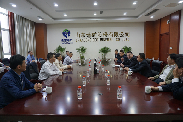 在山东地矿,公司董事长张虹交流介绍了公司近年来克服周期性行业困难,实行矿与非矿两条腿发展战略,逐步走出困境,找到发展新机遇的相关经验。
