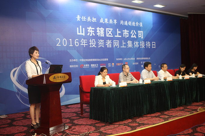 为推动山东辖区上市公司加强与投资者尤其是中小投资者的沟通交流,提高上市公司透明度、美誉度,进一步提升上市公司投资者关系管理水平,保护投资者利益,6月16日,由山东证监局主办,山东上市公司协会、深圳全景网络有限公司协办的“责任共担 成果共享 沟通创造价值---山东辖区上市公司2016年投资者网上集体接待日”活动在济南成功举行。借助互联网新媒体平台,山东辖区141家上市公司近400位高管围绕规范与发展与广大投资者进行了互动交流,集中展示了山东辖区上市公司整体形象。