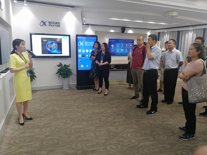 第二站是走进国内人工智能领头企业--科大讯飞股份有限公司。科大讯飞是一家专业从事智能语音及语言技术研究、软件及芯片产品开发、语音信息服务及电子政务系统集成的国家级骨干软件企业。在座谈会上,科大讯飞董事会秘书江涛结合公司具体产品和业务做了题为从能听会说到能理解会思考--科大讯飞人工智能之路,详细阐述了人工智能是什么、人工智能发展到哪了、谁会在人工智能时代胜出。其后参观了公司产品展厅,亲身体验了人工智能在教育、医疗、司法和家居等方面的应用。