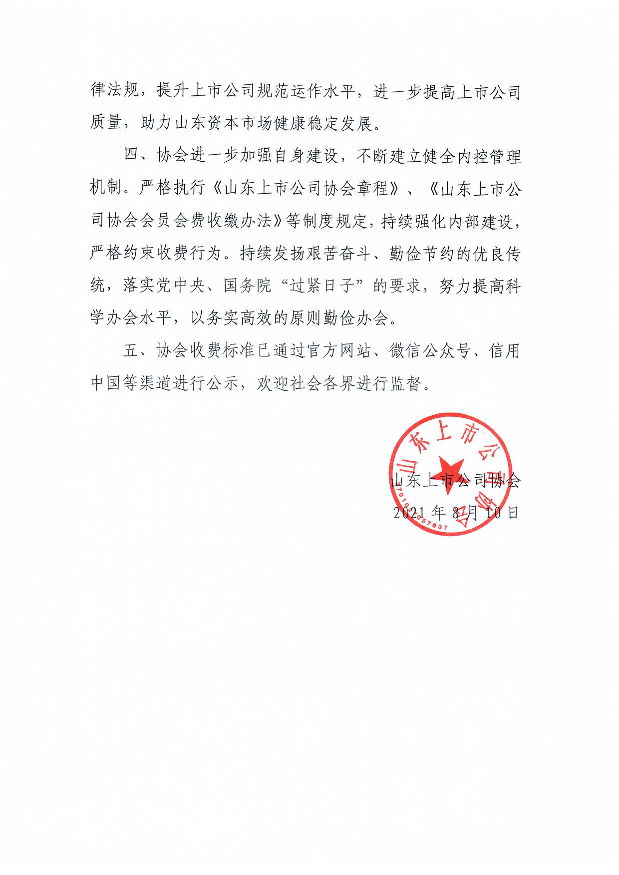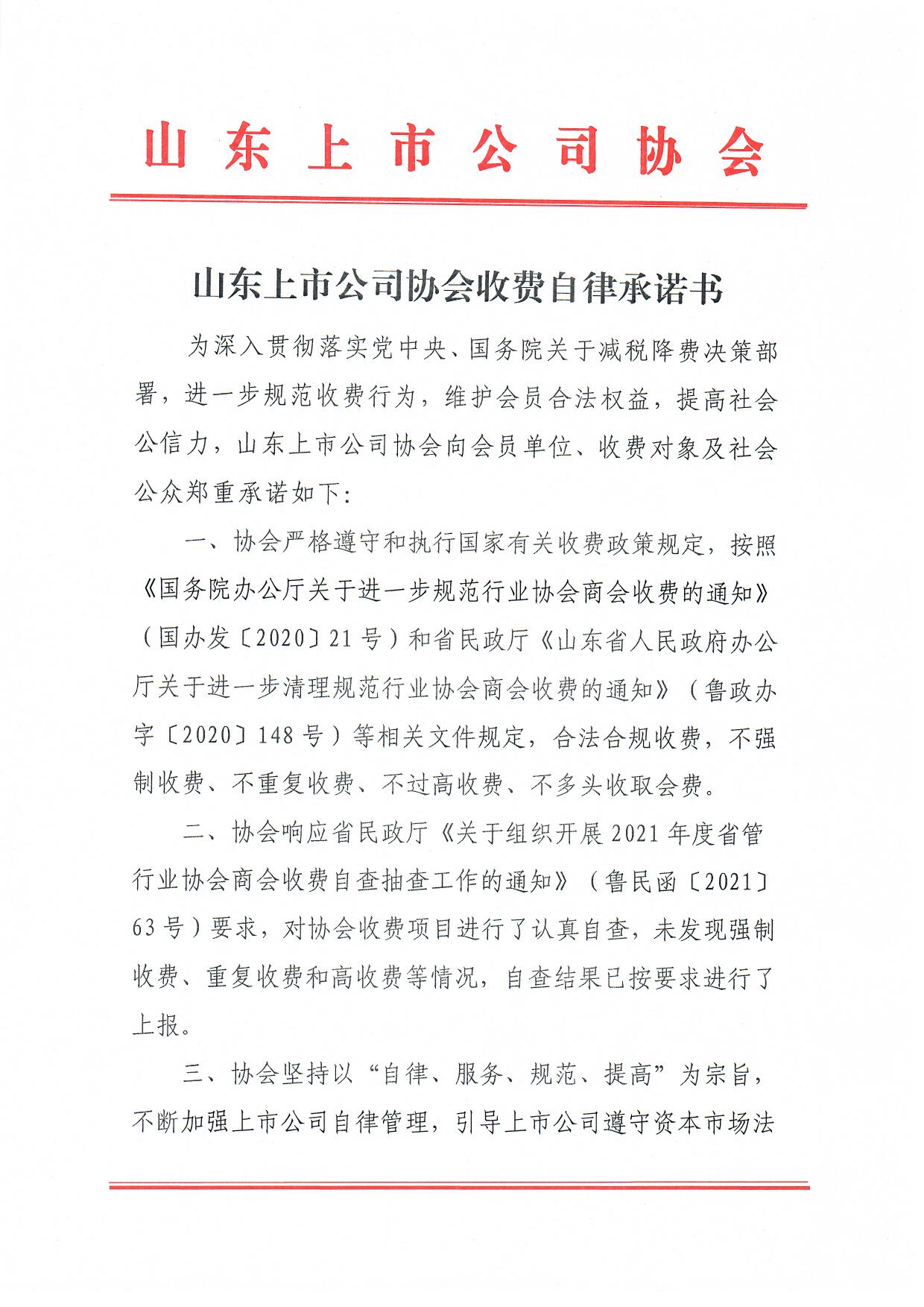 山东上市公司协会收费自律承诺书
