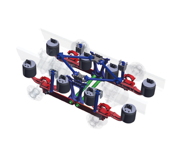 底盘空气悬架产品:1.安装在车架与车桥之间,传递作用在车轮和车架之间的一切力和力矩,比如支撑力、制动力和驱动力等,以及由上述作用力产生的力矩;2.采用空气弹簧作为弹性元件,缓和由不平路面传给车架的冲击载荷,衰减由此引起的振动,保证乘员的舒适性,减小货物和车辆本身的动载荷;3.可选装智能控制系统,实时调节空气弹簧刚度和减振器阻尼,改善驾乘舒适性和整车操稳性。