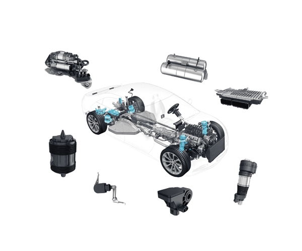 乘用车智能空气悬架系统产品:应用于乘用车底盘系统,可根据车辆运动状态或前方路面信息,自适应地调节车身高度、空气弹簧刚度、减振器阻尼,主要由高度传感器、加速度传感器、ECU、供气单元、分配阀、储气罐、空气弹簧、可调阻尼减振器、气管路、电子线束等组成。