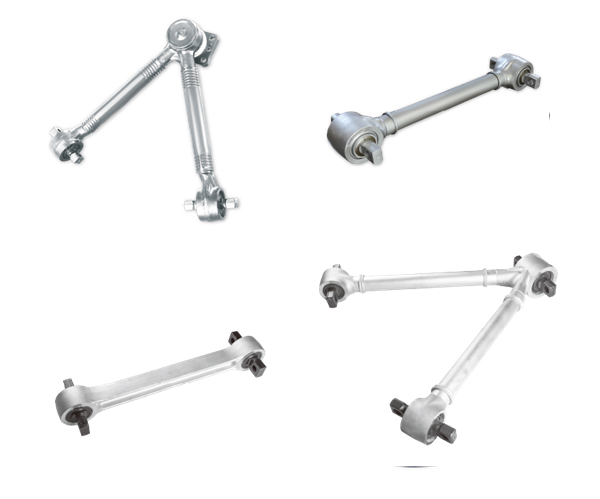 推力杆产品:连接着车架与车桥,有I型、V型两种结构形式,其目的主要是为了克服钢板弹簧只能传递垂直力和侧向力而不能传递牵引力、制动力及其相应的反作用力矩,V型推力杆还可承受侧向力。